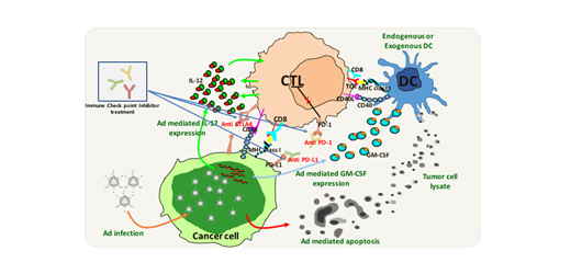 : An oncolytic adenovirus expressing set of cytokines optimized for dendritic cell activation and maturation has been developed. This oncolytic adenovirus in combination with dendritic cells overcomes immunosuppression induced by tumors to elicit potent antitumor immune response (J Control Release. 2017 Aug 10;259:115-127.)